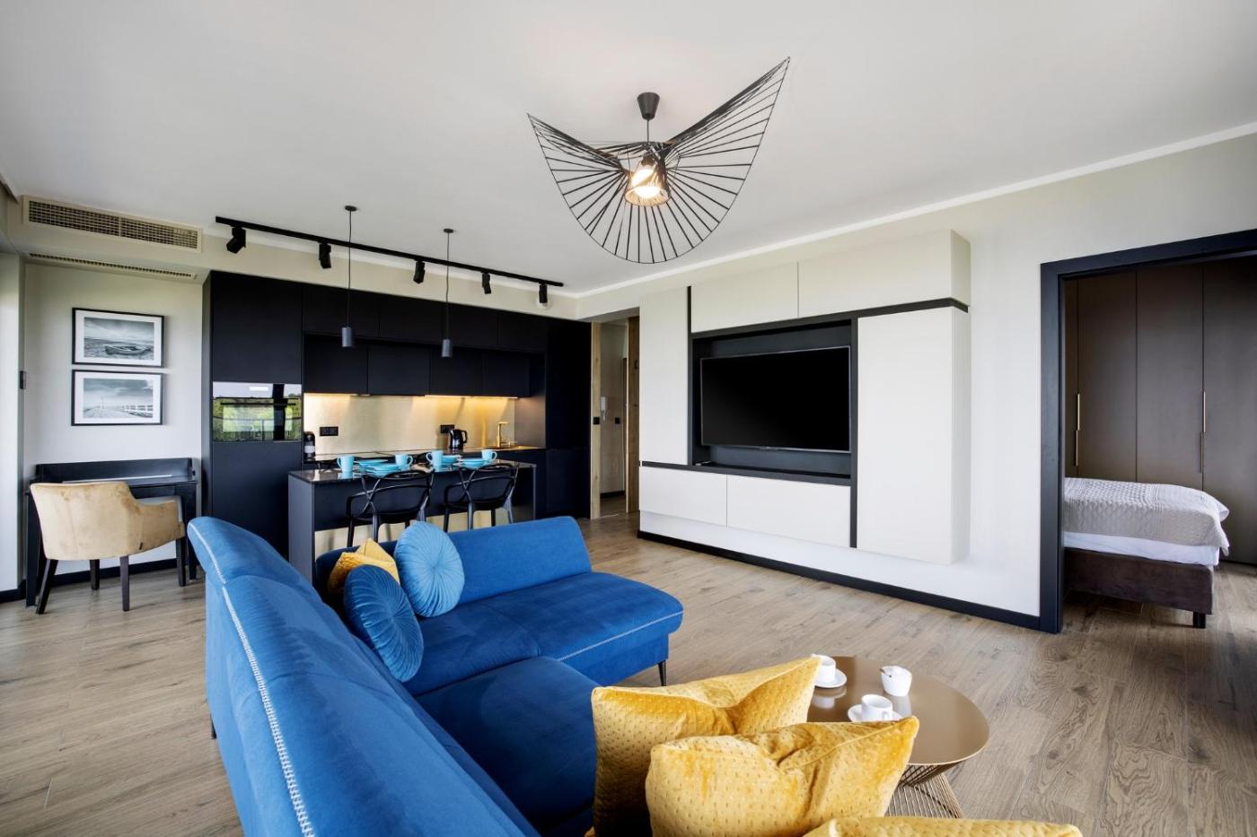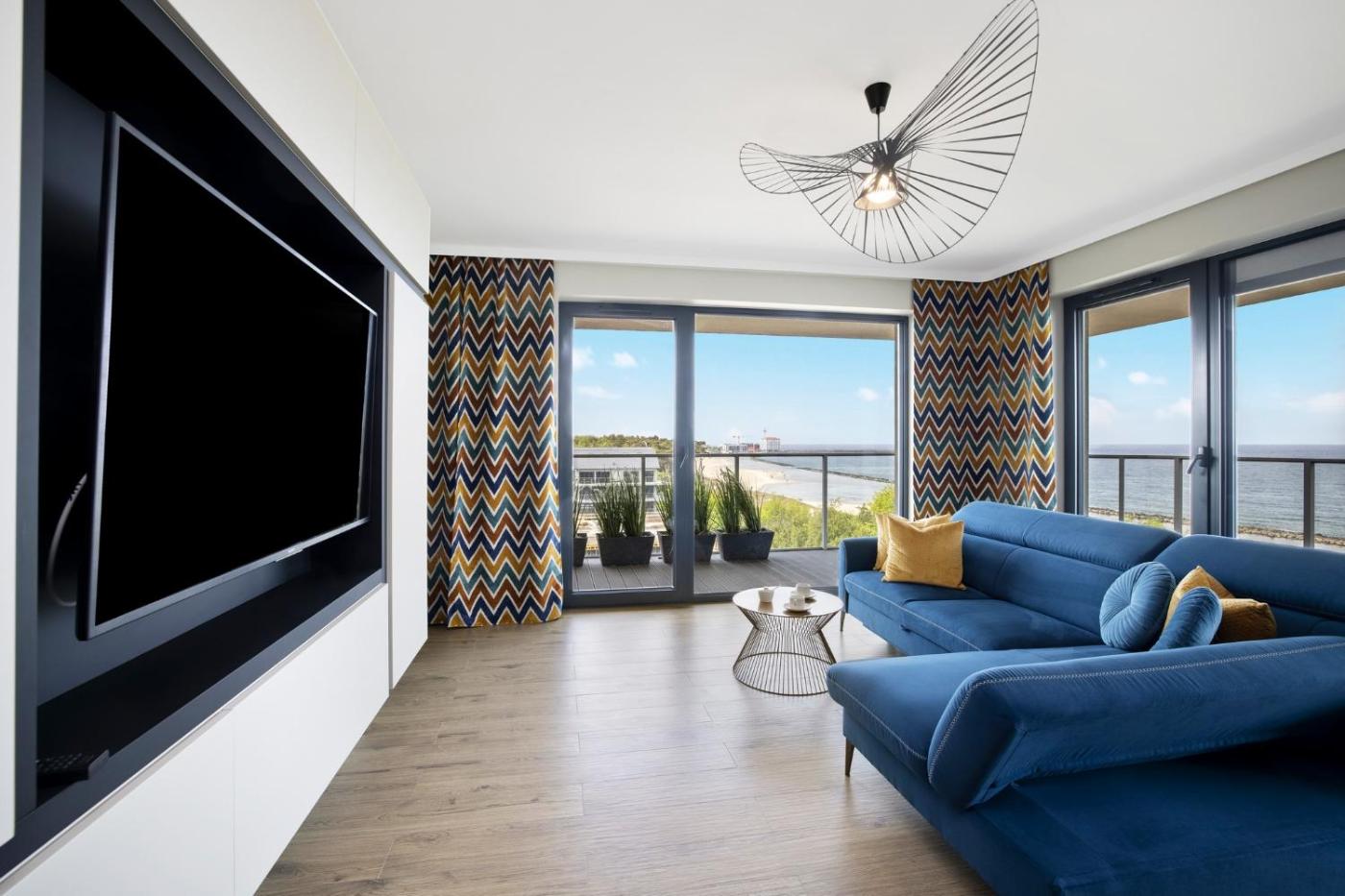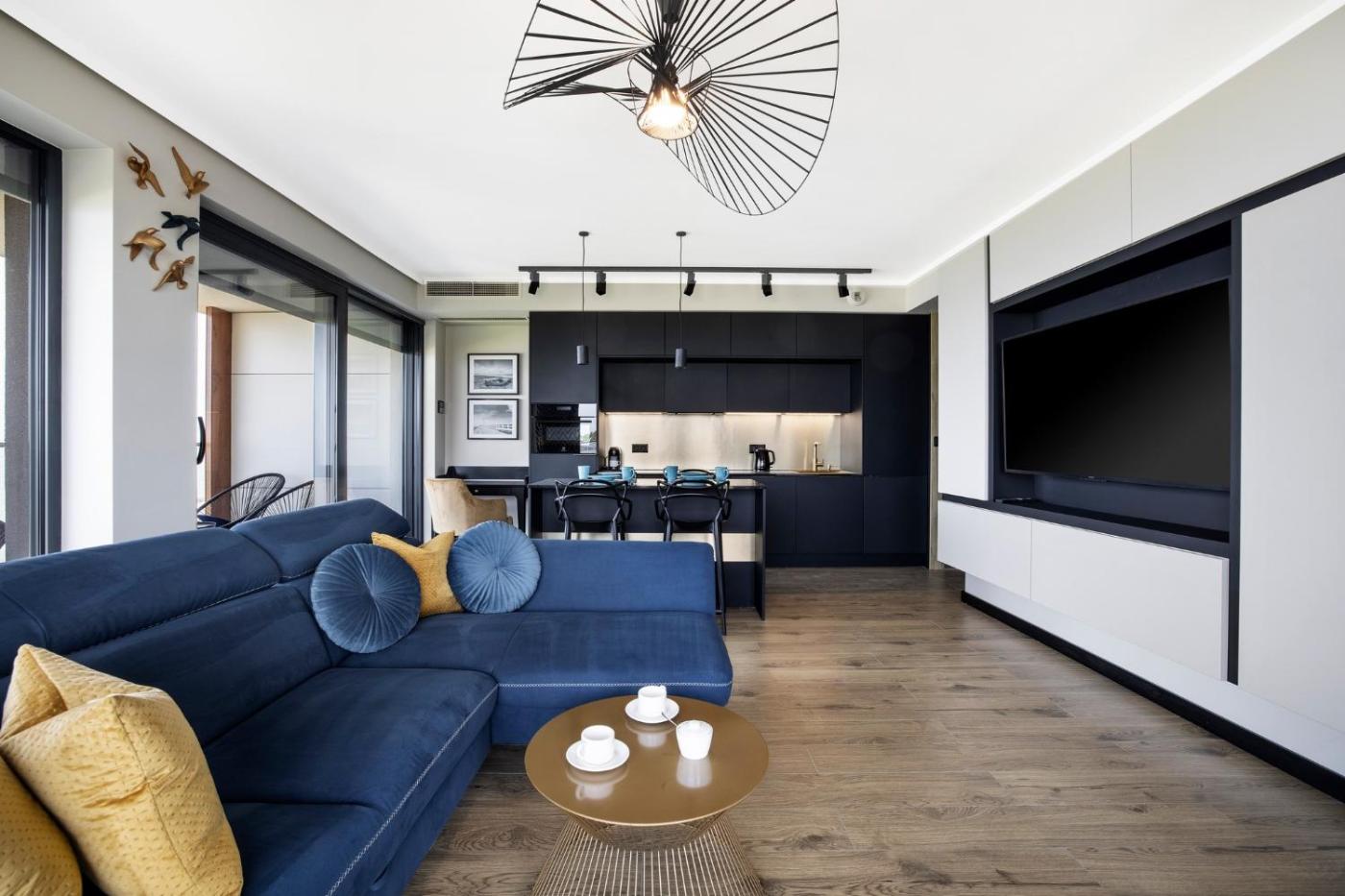 Apartament z 1 sypialnią. The well-fitted kitchen has a stovetop, a refrigerator, a dishwasher and kitchenware. The air-conditioned apartment features a flat-screen TV, a washing machine, a private entrance, soundproof walls as well as sea views. The unit has 2 beds. Apartament - 4 osobowy. Powierzchnia pokoju ok.: 47 mkw.