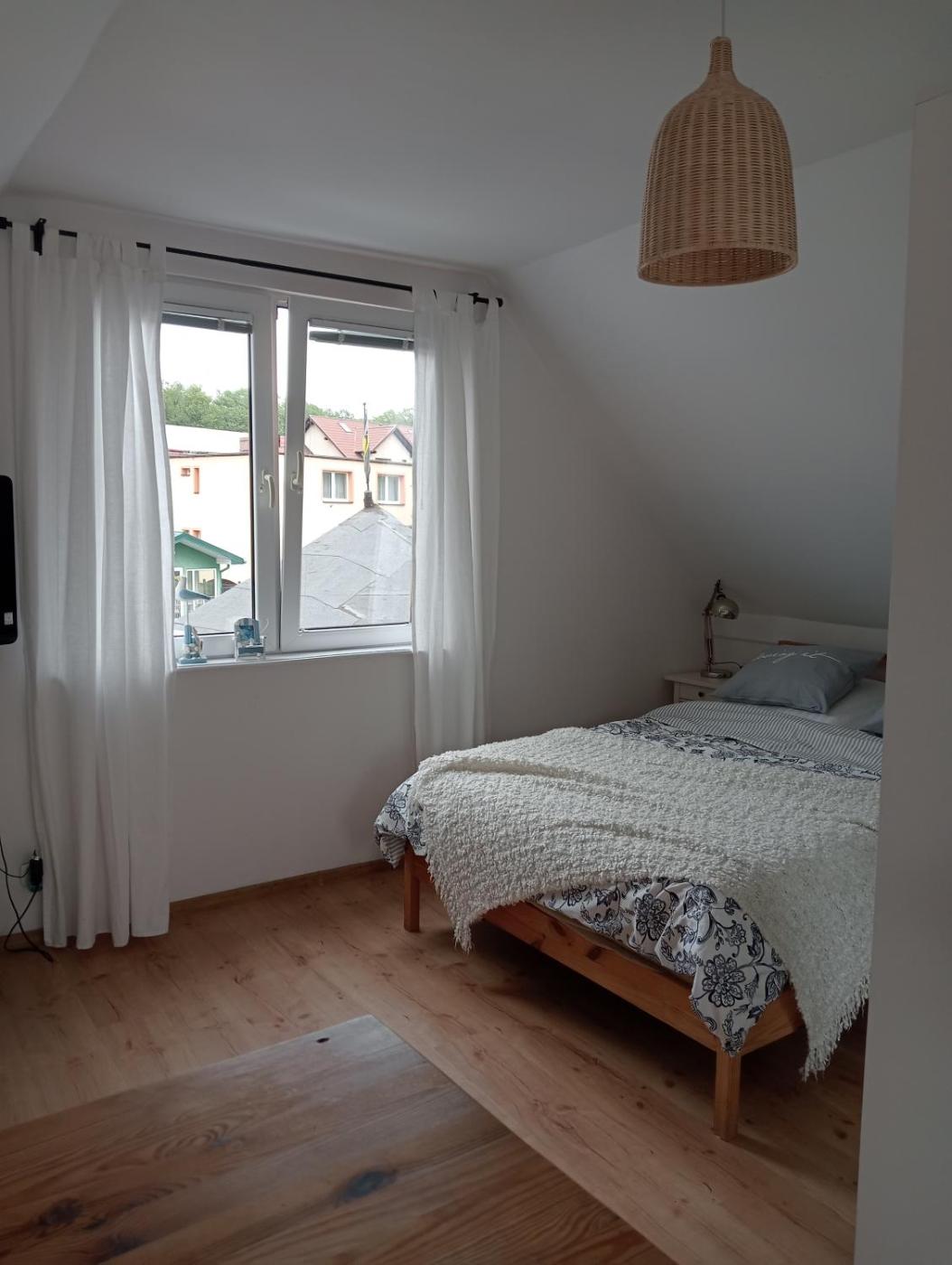 Dom z 2 sypialniami. This holiday home comes with 1 living room, 2 separate bedrooms and 1 bathroom with a shower and a hairdryer. Guests will find a stovetop, a refrigerator, kitchenware and an electric kettle in the well-equipped kitchen. The holiday home also includes a barbecue. Boasting a terrace with garden views, this holiday home also features a seating area and a flat-screen TV. The unit has 2 beds. Dom wakacyjny - 4 osobowy. Powierzchnia pokoju ok.: 30 mkw. ;